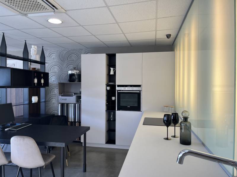 Venez découvrir cette nouvelle cuisine d'exposition modèle Maxima 2.2 de chez Cesar en finition Technomat décor Camoscio