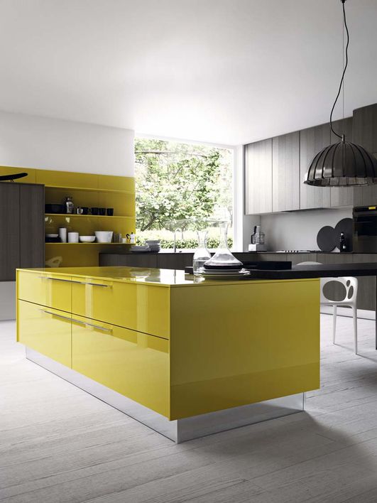 Des portes de 1.4 cm d'épaisseur seulement, des hauteurs et des largeurs variables et pouvant se composer comme une portée musicale, des meubles ouverts polyvalents, des finitions coordonnées ou contrastantes: telles sont les règles d'un modèle qui unit la cuisine et le living dans des architectures inédites et originales.
