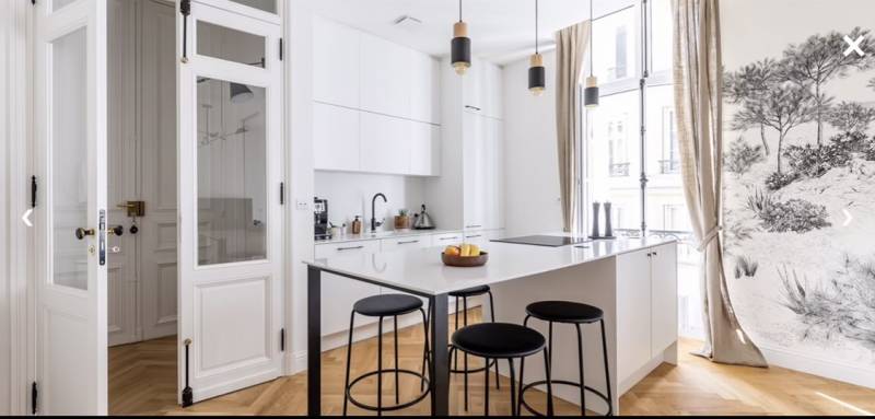 Euro Cuisine vous présente cette magnifique cuisine Discac modèle Opale en laque mate coloris blanc réalisée dans un appartement de style caractéristique de la ville de Bordeaux.
