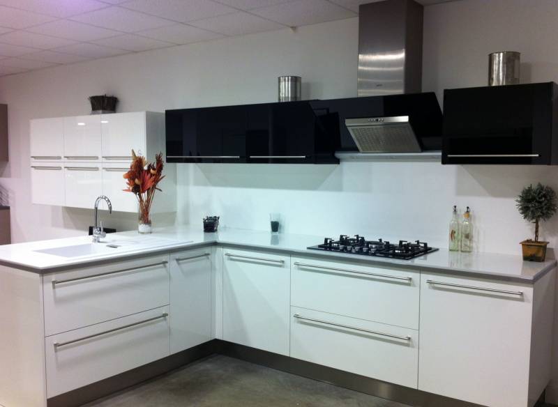 En vue du renouvellement d'une cuisine d'exposition, nous cédons à prix très réduit cette jolie cuisine modèle Cristal noire et blanche.