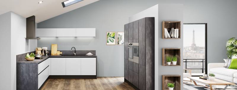 La gamme EFFET vous permettra d'apporter du relief à votre cuisine grâce à ses finitions contemporaines et dont la couleur varie suivant la luminosité de votre pièce. Que ce soit l'aspect brut du béton ou métallisé de l'ardoise, votre projet se démarquera par son originalité.