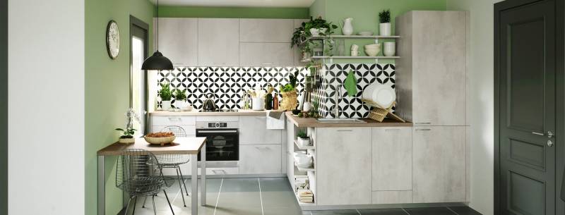 Associé à des couleurs affirmées, vous mettrez en valeur le caractère propre de l'effet choisi, dans le style que vous souhaitez. Vous pouvez également réchauffer l'ensemble en l'accordant avec des façades ou un plan de travail en bois. Avec une couleur plus neutre, vous donnerez élégance et contraste à un ensemble minimaliste.