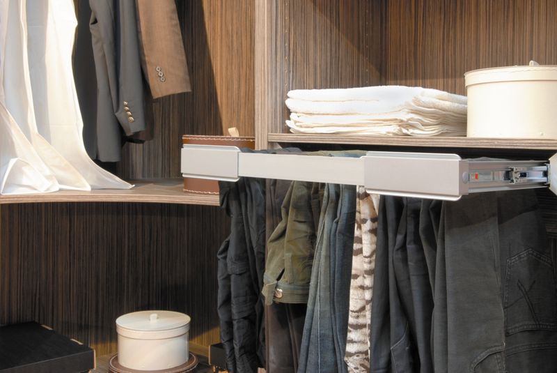 On peut y intégrer de nombreux accessoires comme des tiroirs, des tablettes portes chemises, des porte-pantalons, des élévateurs de garde robe, des porte-chaussures fixes ou coulissants…